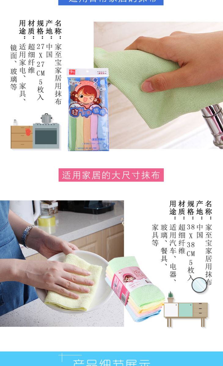 【家至寶】家居用抹布(5枚入)
